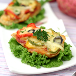 양파, 파프리카, 버섯, 올리브, 베이컨 등 원하는 재료를 고구마 퓌레 위에 골고루 올려주세요. 각 재료는 너무 두껍지 않게 올리는 것이 중요해요~