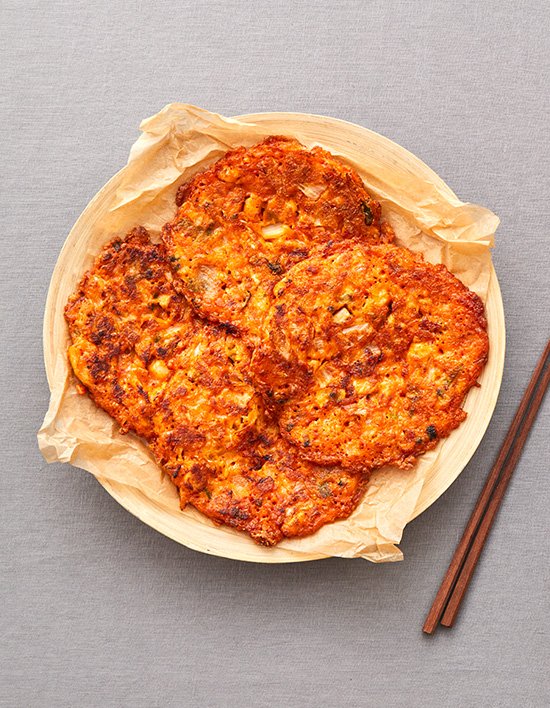 많은 양의 반죽을 한 번에 부치면 김치전이 눅눅해질 수 있어요. 적당한 양의 반죽을 팬에 부쳐서 고르게 익히는 것이 바삭한 김치전을 만드는 비법이에요! ^^ 하나의 팬에 너무 많은 반죽을 올리지 않도록 주의하세요!
