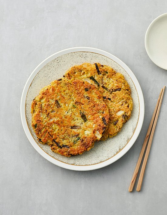 채소가 너무 많으면 반죽이 무거워지고 수분이 많아져 전이 흐물흐물해져요. 부추와 양파는 적당히 넣어 녹두 본연의 맛을 해치지 않는 것이 포인트랍니다.