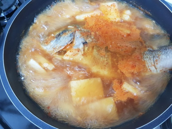 2. 손질한 도미를 넣고 양념장을 넣어줍니다. ^^