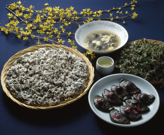 ① 쑥(100g): 데친 후 물기를 꼭 짜서 사용. 신선한 쑥은 아데노신 성분이 혈액순환 개선에 도움