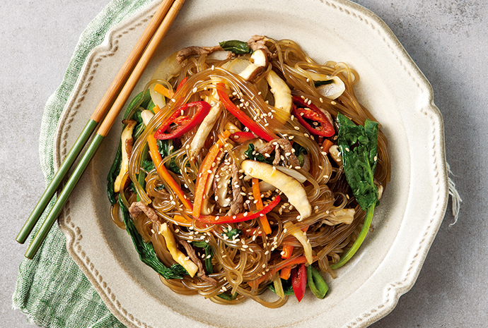 잡채의 주 재료인 **당면**은 탄수화물이 많아 에너지원으로 좋지만, 그 안에 포함된 **식이섬유**는 **소화기 건강**을 돕고, **장운동을 촉진**시켜준답니다! :) 당면이 주는 **포만감**도 뛰어나, 한 그릇 먹으면 다른 음식을 먹지 않아도 될 정도로 만족스러워요~