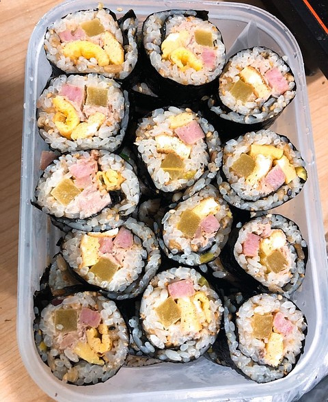 참치 대연 훈제 연어를 사용해도 맛있고, 채식주의자들은 두부를 으깨어 사용할 수 있습니다. 김밥은 실온에서 2시간, 냉장고에서는 24시간까지 보관 가능하지만, 가능하면 만든 직후 먹는 것이 가장 맛있어요. 남은 김밥은 공기 밀폐용기에 담아 보관하세요. 다음 날 먹을 때는 전자레인지에 20초만 데우면 됩니다.